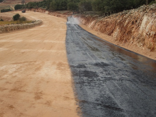 Construction of 2.67 km of a new road connecting Souf and Ain Janna. Work included earth works (excavation and backfilling in accordance with road-design profiles and natural earth contours and elevation), layer selection, performing sub-layer works, including laying base and sub base courses, selected layers, and sub grads), performing piling works, reinforced concrete bridges, nodes of the lanes and the main corridor, paving, piping for drinking water and irrigation with different diameters, electrical works, box culverts,..etc.: